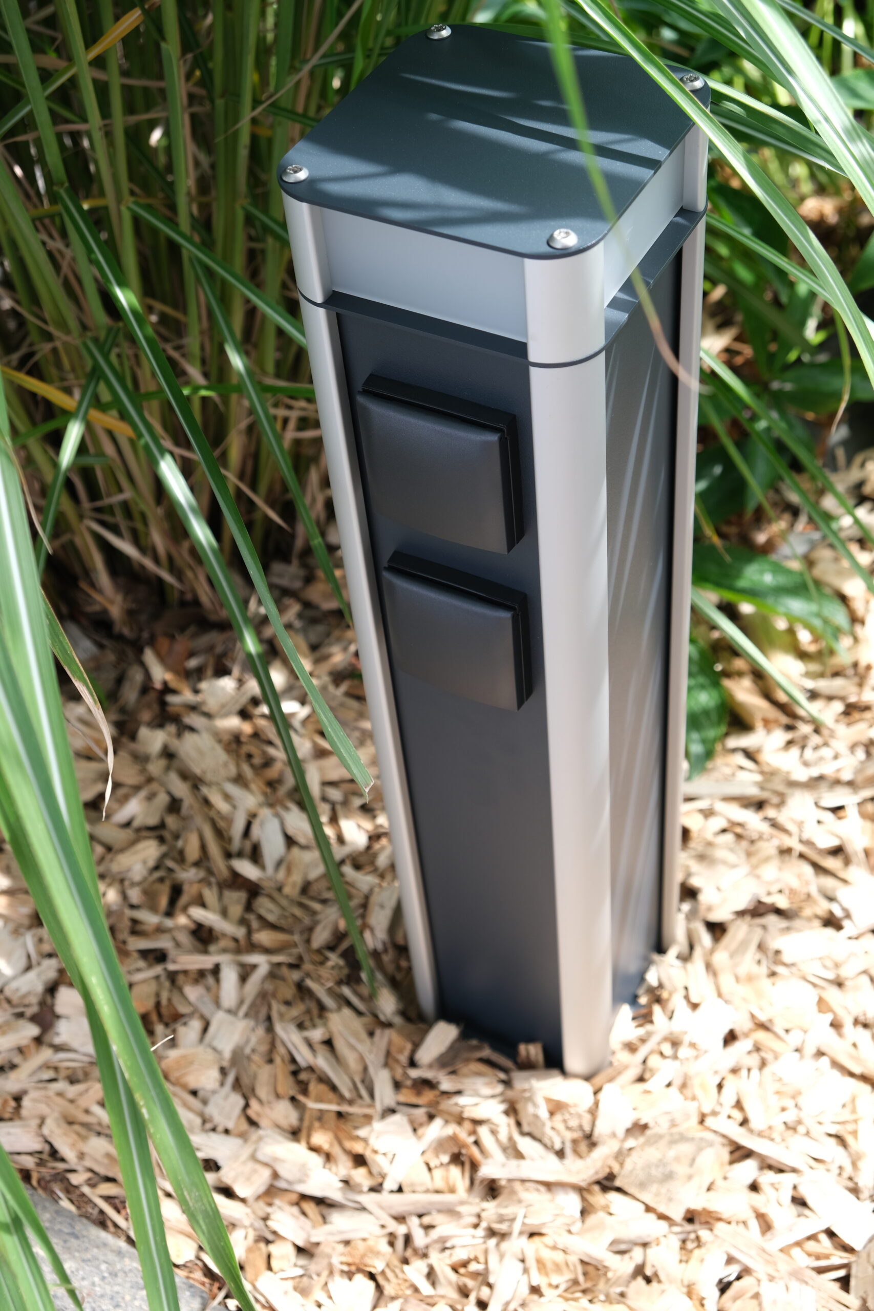 - Alle Module sind pulverbeschichtet mit hochwetterfestem Pulver in RAL 7016 anthrazitgrau, Feinstruktur.